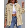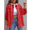 Neue Jeans-Kapuzenjacke, Damen-Einfarbige Lockere Jacke, Gerissene Langarm-Jeanshemd für Damen