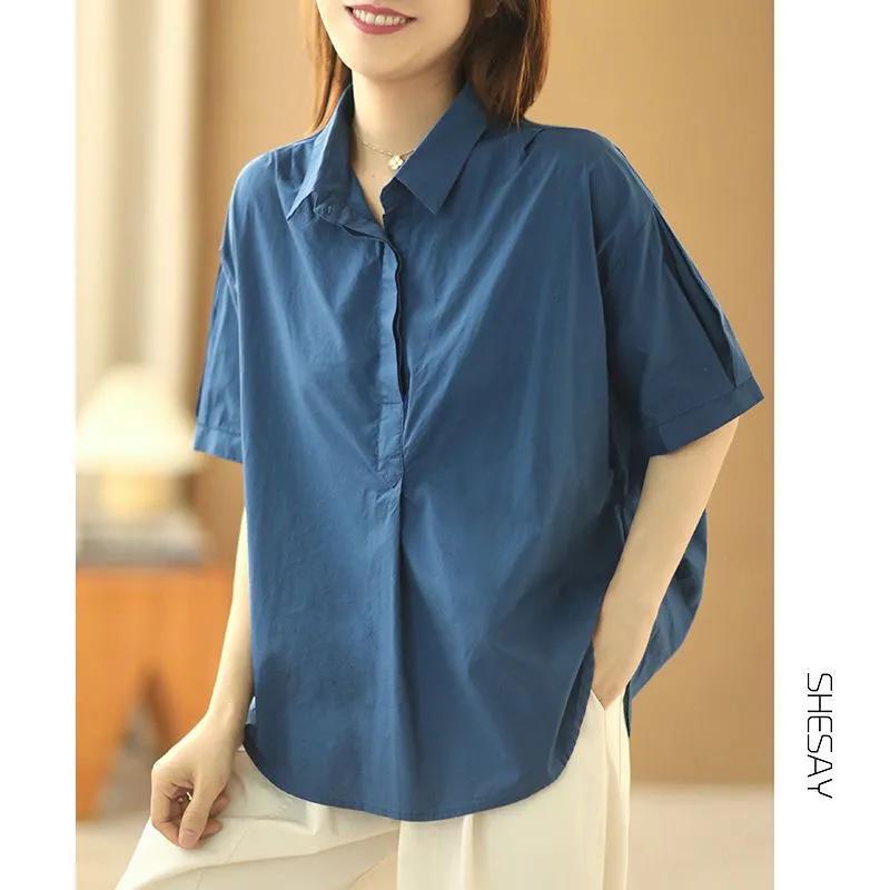 Reine Baumwolle Locker Lässige Schneiderei Einfarbig Lässig Vielseitig Kurzärmliges Hemd Damen Sommer Neu