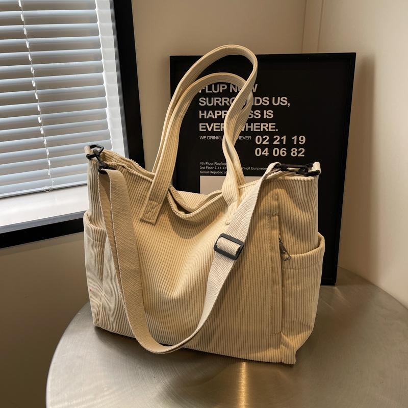 New corduroy bag women's commuting large-capacity simple student class shoulder handbag work messenger bag