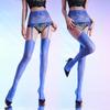 Sexy Plus Size High Waist Lace One-Piece Suspender Stockings Women Glossy Stockings 8D Erotic Open Crotch See-Through Temptation