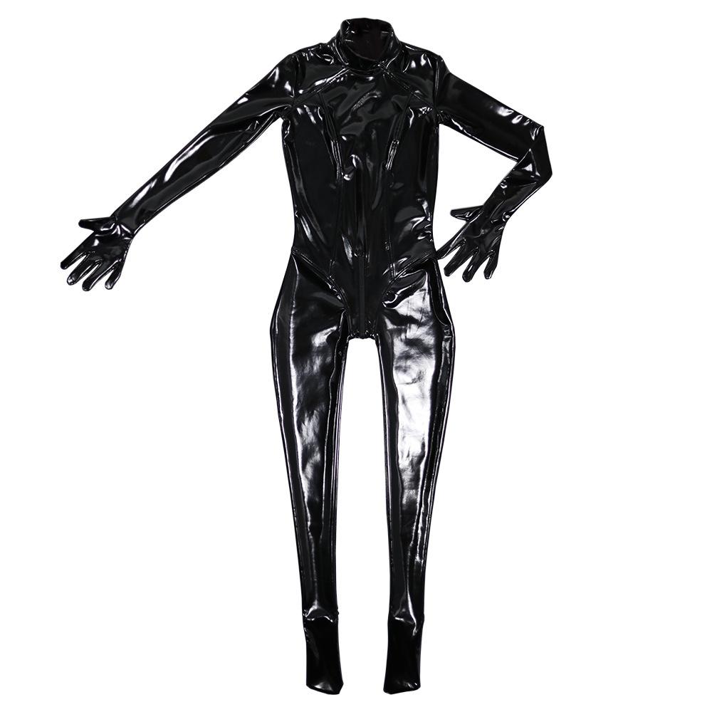 Mode Ganzkörper-Jumpsuit Damen Latex Ammoniak Sexy PU Glänzend Bodysuit Hoher Kragen Shaper Wear Nachtclub Auftritt Tanzstrumpfhose【Paket】:1 * Body;(Datenschutzverpackung, Vertrauliche Lieferung)