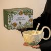 Keramiktasse Henkeltasse mit Löffel Frühstückstasse Müslischale Tasse für heiße Milch blühende Kaffeetasse Untertasse Schale