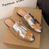 Mode Damen Hausschuhe Flache Sandalen Quadratische Zehen Loafer Schuhe Frau Pantoletten 2025 Trend Sommer Weiches Leder Flach Weiche Sohle Sandalen
