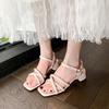 Mode Damen Sandalen Sommer Neu Quadratischer Absatz Hohe Schuhe Mode Römische Sandalen Schwarz und Weiß Zehenfrei Damen Hausschuhe Damenschuhe
