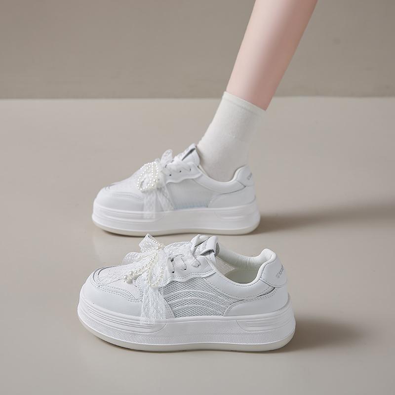 Mode CRLAYDK Klassische Damen-Sneaker Lässig Skateboard Walking Schnürschuhe Sommer Schuhe Plateau Damen Mesh Weiß Low Top Sport Tennis
