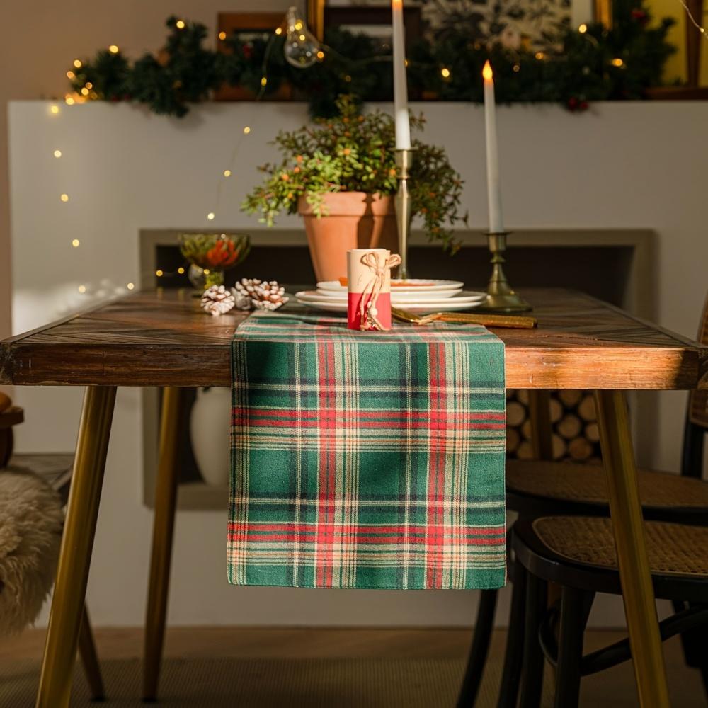 1 Stück Festlicher Grüner Farbverlauf Karo Tischläufer - Weihnachts- & Feiertagsdeko, Perfekt für Weihnachts- und Winterfeiern