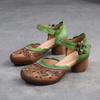 Mode GKTINOO 2025 Neue Damen Sandalen Sommer Echtes Leder Dicke Absätze Sandalen Retro-Stil Runde Zehenpartie Lässig Hoher Absatz Mama Schuhe
