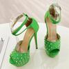 Mode Eilyken Mode Grün Nieten Plateau Schnallenriemen Damen Pumps Sexy Offene Zehen Ultra Stiletto Hohe Absätze Nachtclub Ballschuhe