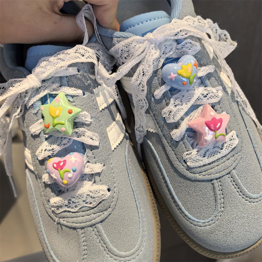 New Girl Pearl Crystal Bow Shoe Charm DIY Tulip Shoe Laces Charms for Sneakers Colorful Star Love Buckle Shoes Decorations