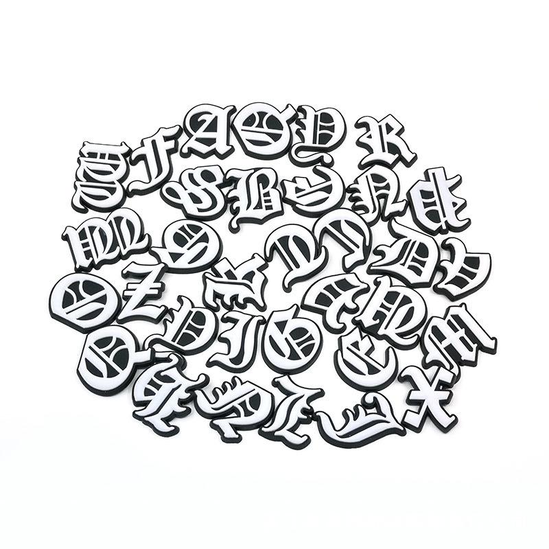1 StückNeuer Stil Anhänger Altenglischer Buchstabe PVC Loch Schuh Schuhe Blume Silberner Buchstabe Schuhe Anhänger Schuhe Dekoratives Zubehör