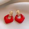 Rote Tropfenöl Silberne Nadel Runde Ohrringe: Retro Fee Design Mode Ohrschmuck