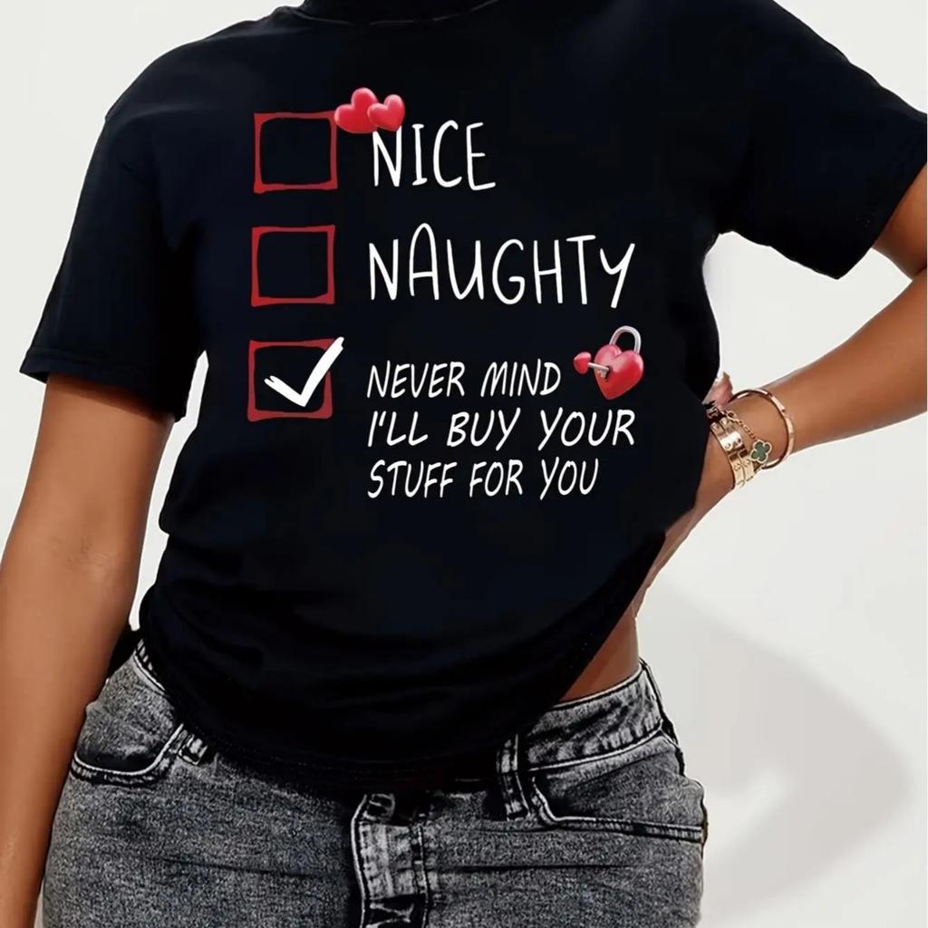1 Stück Damen Casual Rundhals T-Shirt mit NaughtPrint - Gestricktes Kurzarm-Tee für alle Jahreszeiten
