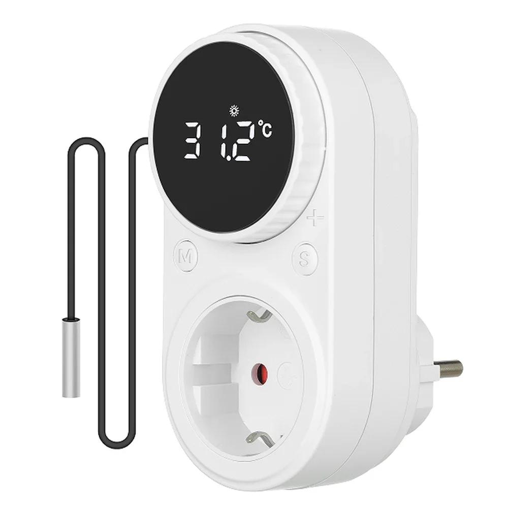 Drehknopf Temperaturregler Timer Steckdose EU Thermostat mit Temperatursensor Digitaler Thermostat Schalter Heiz- Kühlregelung
