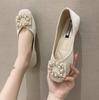 Sanfte Perle Großmutter Schuhe Flacher Mund Quadratischen Kopf Weichen Flachen Boden Temperament Einzelnen Schuh Weiblichen Sommer