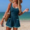 Damen Einfarbiger Einteiler Sport Bikini Badeanzug Ohr