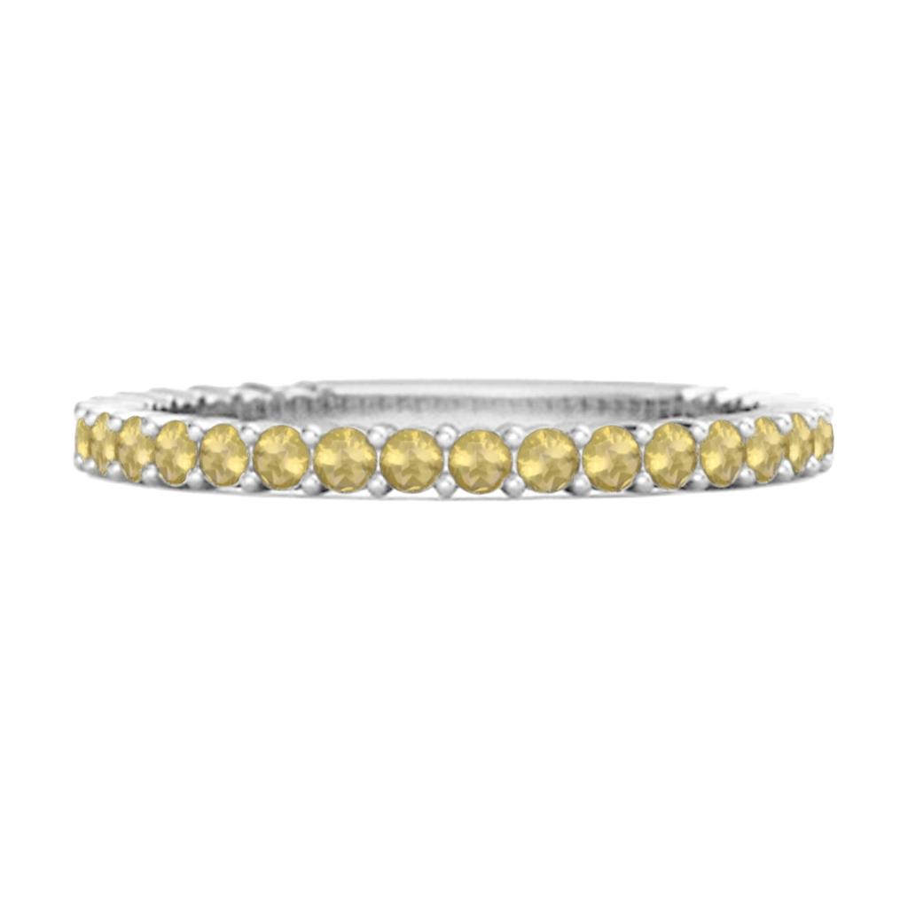 Ewigkeitring aus 925er Sterlingsilber mit 0,69 ct Zitronenquarz im 2 mm Rundschliff. Ein lebhafter und fröhlicher Stapelring für den täglichen Gebrauch.