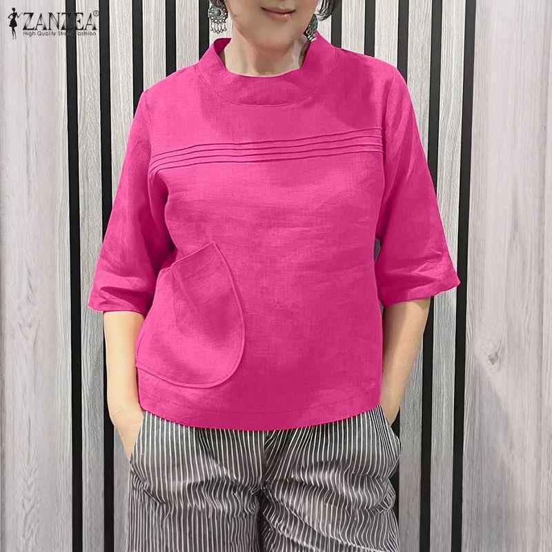 ZANZEA Lässige Bluse mit Rundhalsausschnitt und 3/4-Ärmeln für Damen
