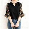 ZANZEA Women Floral Print Splice 3/4 Sleeve Casual V-Neck Blouse
