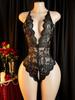 Crotchless Pink Sexy Lingerie Women Hollow Bodysuits Erotic Costumes Teddy Babydoll Dress Deep V Open Bra Female Porn Underwear