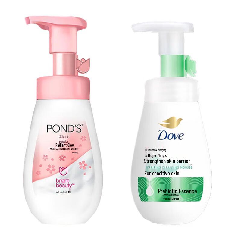 This exclusive skincare set combines two powerful cleansing foams for a comprehensive facial care experience. The Pond's Cherry Blossom Brightening Cleansing Foam (160ml) is formulated to gently cleanse and illuminate your complexion, promoting a radiant glow. Paired with it is the Dove Oil Control Repair Cleansing Foam (160ml), expertly designed to manage excess oil and aid in skin repair, leaving your skin feeling balanced and refreshed. Both products are suitable for a wide range of skin types, offering tailored care for your daily routine.