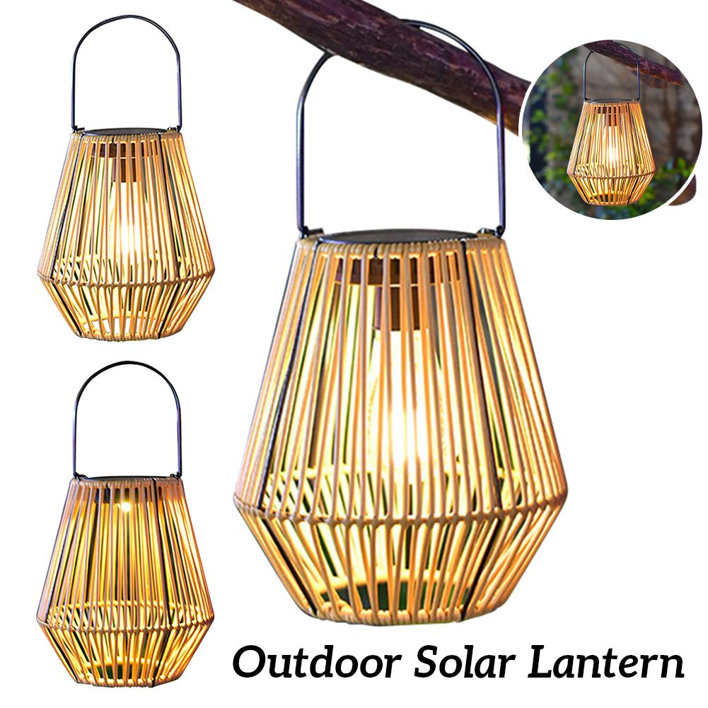 Rattan Solar Lantern IP65 Waterproof Outside Big Rattan Solar Light Rattan Weaving Solar Garden Lantern for Balcony Patio Garden