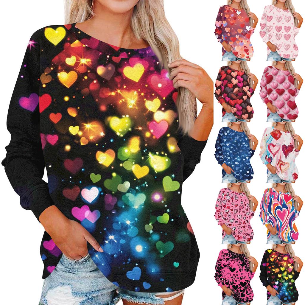 Damen Modisches Rundhals Schulter Langarm Valentinstag Bedrucktes Lässiges Pullover-Oberteil