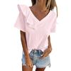 Women's Fashion Solid Color V-Neck Short Sleeve T-Shirt With Half Ruffle Shirt