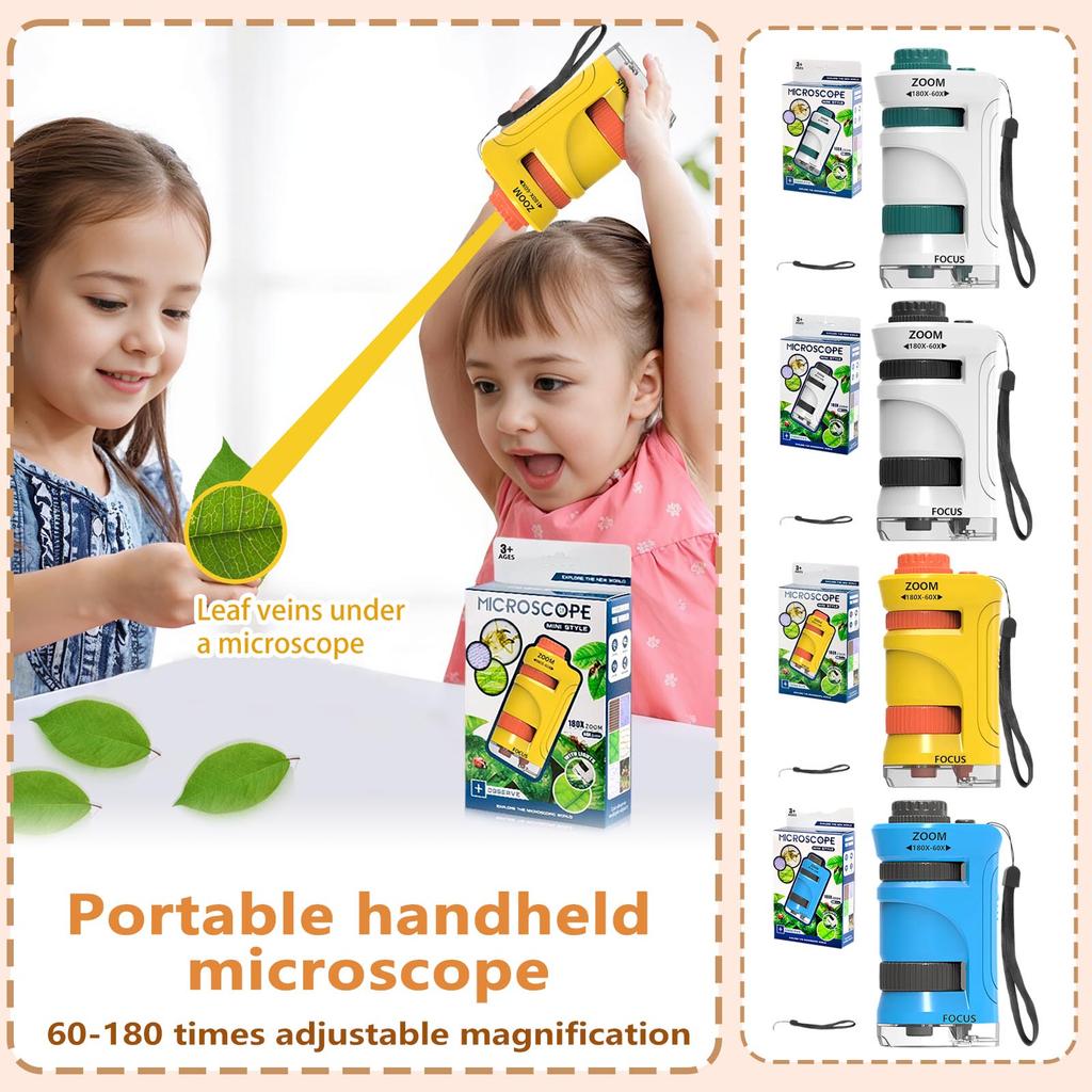 Tragbares Handmikroskop, 60X-180X Einstellbare Vergrößerung Pädagogisches Wissenschaftsspielzeug für Kinder, Taschenmikroskop