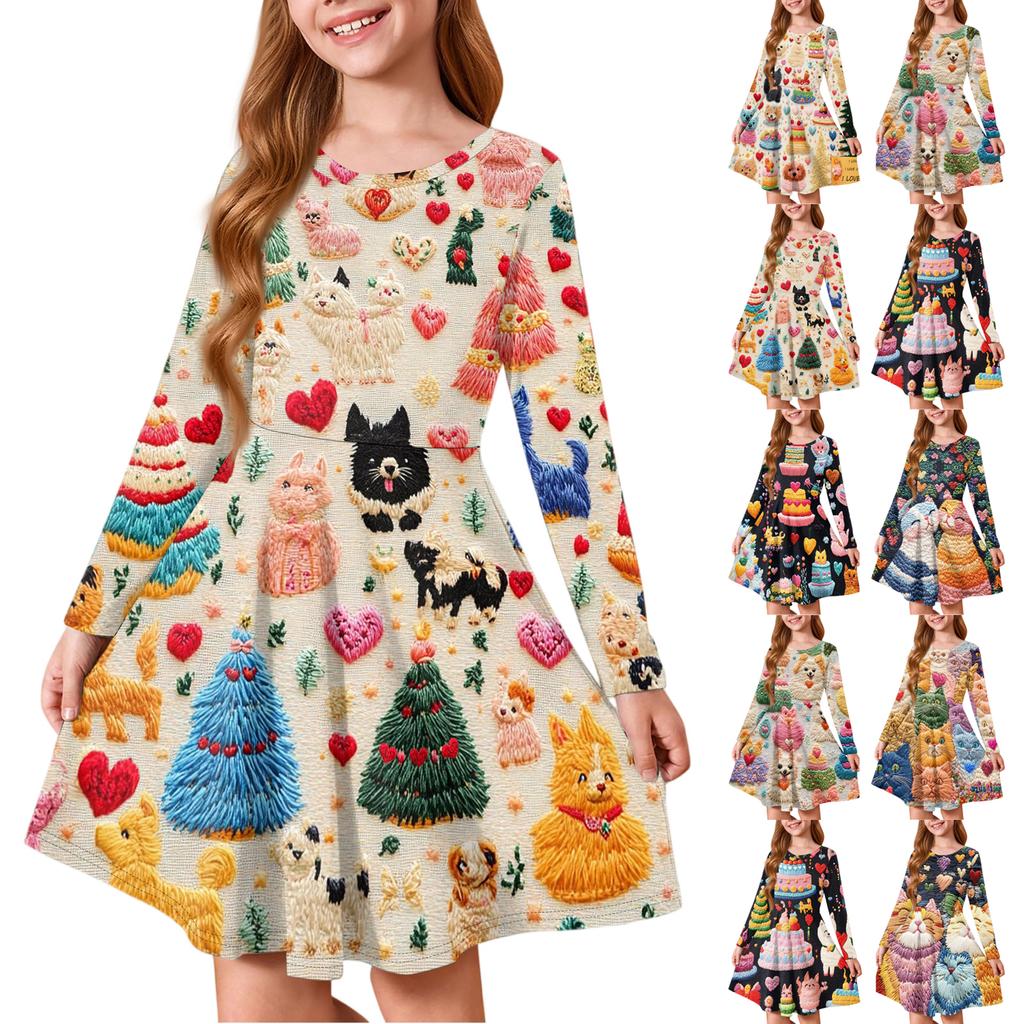 Sommer-Prinzessinenkleid für Mädchen - Langärmeliges A-Linien-T-Shirt-Kleid Valentinstag