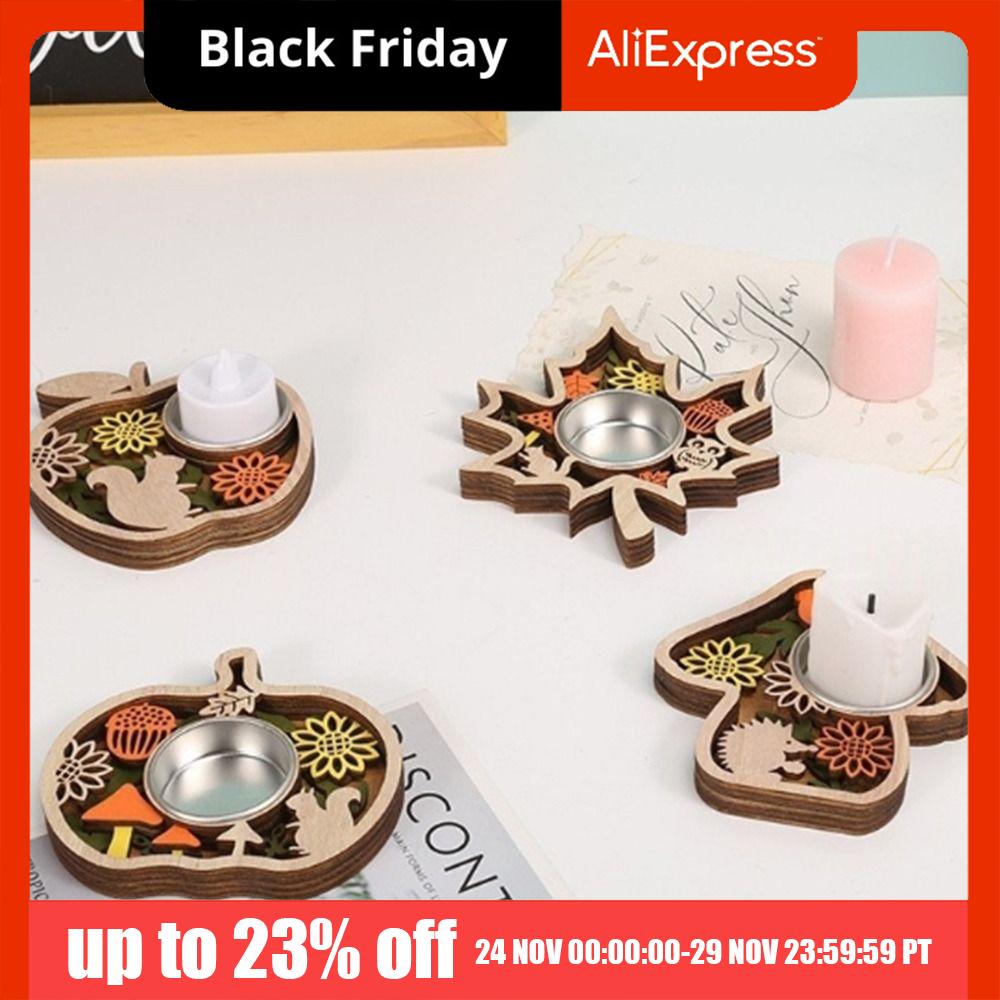 Romantischer Halloween-Kerzenhalter, 3D-Kreativer Kürbis-Geist-Kerzenständer, mehrschichtig, mit Metallfuß, Kerzenständer aus Holz