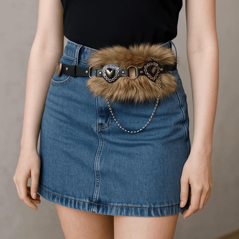 PU Leather Furry Waistband Patchwork Heart Y2K Waistband Personality Plush Belt Female/Girls
