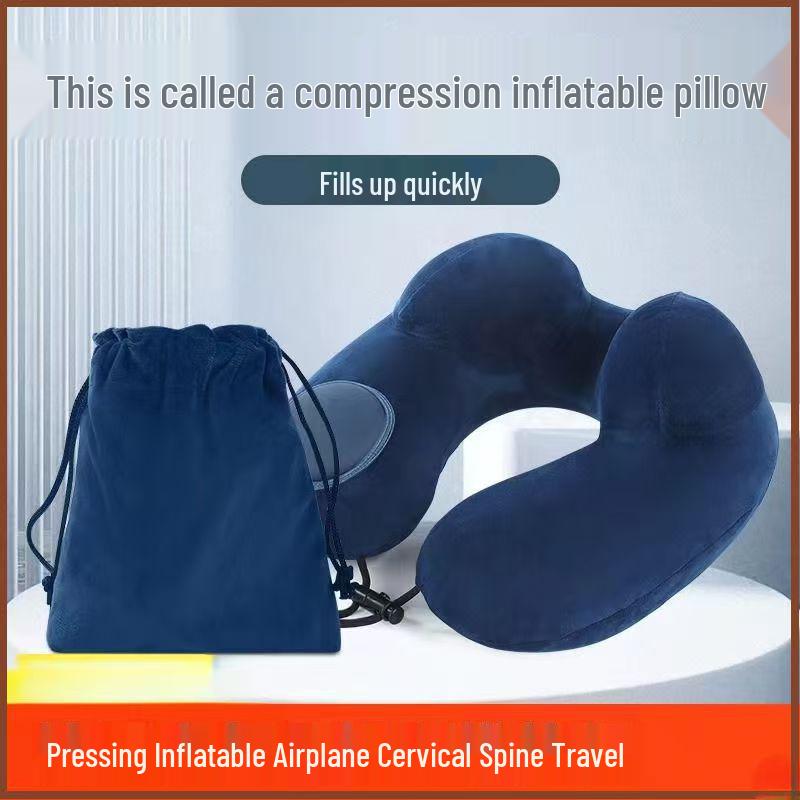 U-förmiges Reise-Nackenkissen - Zum Aufblasen drücken, Tragbare Stütze für Flüge und Geschäftsreisen