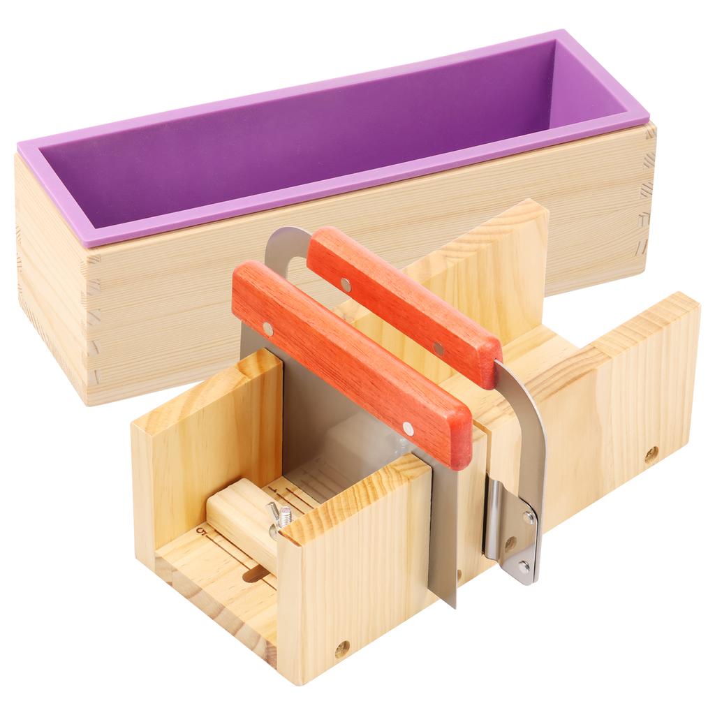 1Set Silicone Soap Making Kit Wooden Mould Soap Crafting Set with Stainless Steel Wave and Straight Cutter for Soap Making Tools