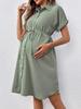 Sommer Kurzarm Knopf Lässiges Umstandskleid mit Mode Gürtel