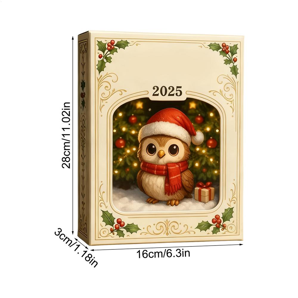 2025 Weihnachts-Countdown-Kalender 2D Flaches Acryl Ornament mit Tiermotiv 24 Tage Eulen-Ornament Countdown-Kalender für Männer Frauen