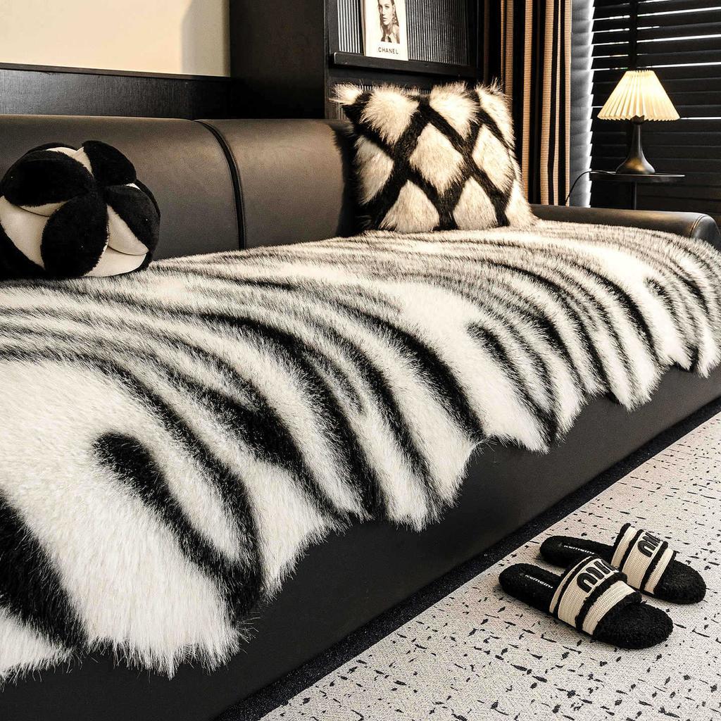 Luxury Imitation Mink Fur Sofa Cover Non-Slip Solid Color Thicken Warm Plush Sofa Towel For Living Room Couch Cover Home Decor