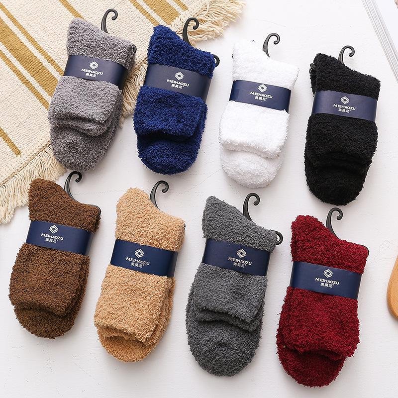 Superwarme Herren-Wadenlange Korallenfleece-Bodensocken für Herbst und Winter.