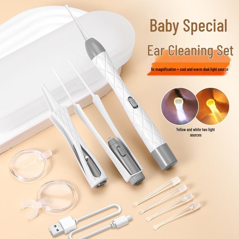 LED Ohrreinigungsset für Kinder: Leuchtendes Ohrstäbchen, Baby-Pinzette mit Licht & Wiederaufladbares Weichspitzen-Werkzeug