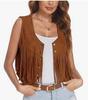 Europäischer & Amerikanischer Stil Damen Fransenweste - Retro Lässig Frühlingsdesign mit Knöpfen