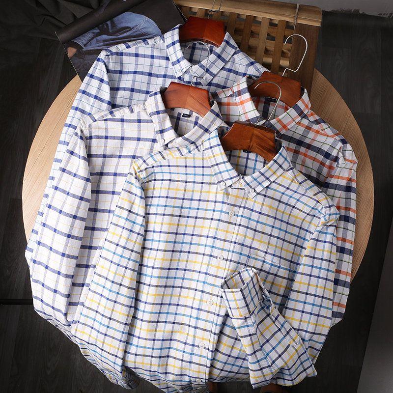 Gok Pure Cotton! Oxford Cloth Shirt! Classic All-Match! Foreign Trade Men's Factory Tail Goods Plaid Long sleeve Shirts Tide