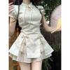 Retro Chinesischer Cheongsam Zweiteilig: Pan Kou Puffärmelkleid