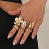 Europäischer & Amerikanischer Perlen-Hohlring mit Strasssteinen & Blumen-Knöcheldesign
