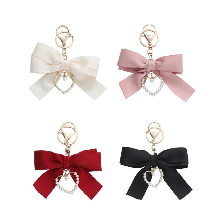 Lightweight Pearls Heart Ribbon Bowknot Keychain Accessory Crafted From High Quality Materials For Long Lasting Use