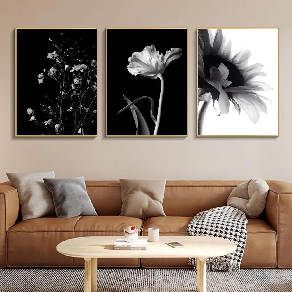 Black and White Wall Art Plant Flower Poster Printing Canvas Painting Nordic Living Room Home Decoration Wall Painting