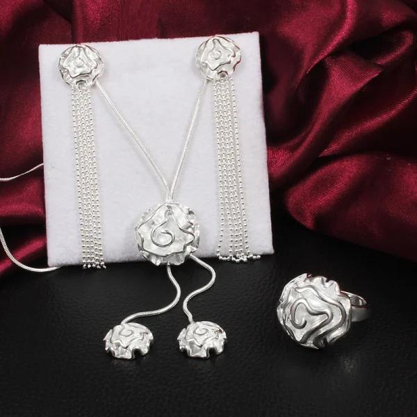 Fein Kupfer Hübsche Rosenblumen Halskette Ohrringe Ringe für Frauen Schmuckset Mode Party Hochzeitsaccessoires Geschenk