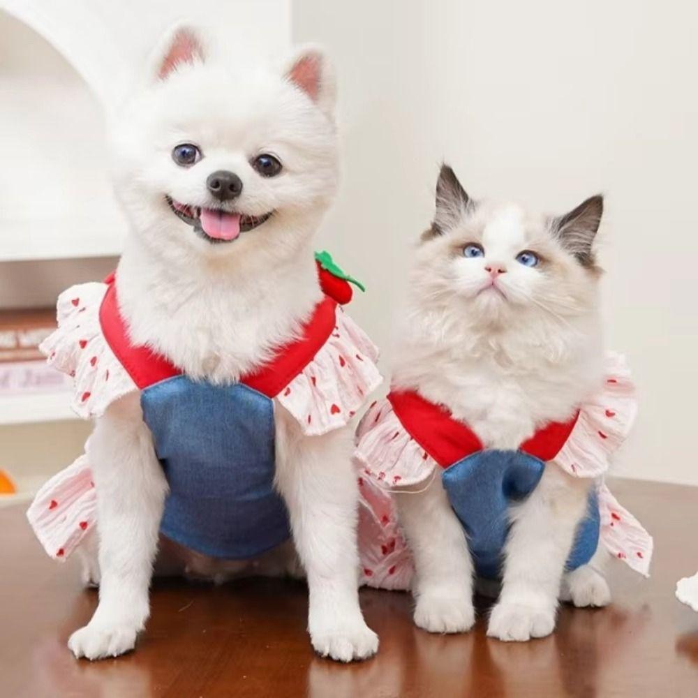 Heart Print Dog Harness Dress Cute Pet Dress Universal Denim Puppy Princess Skirt Pet Supplies
