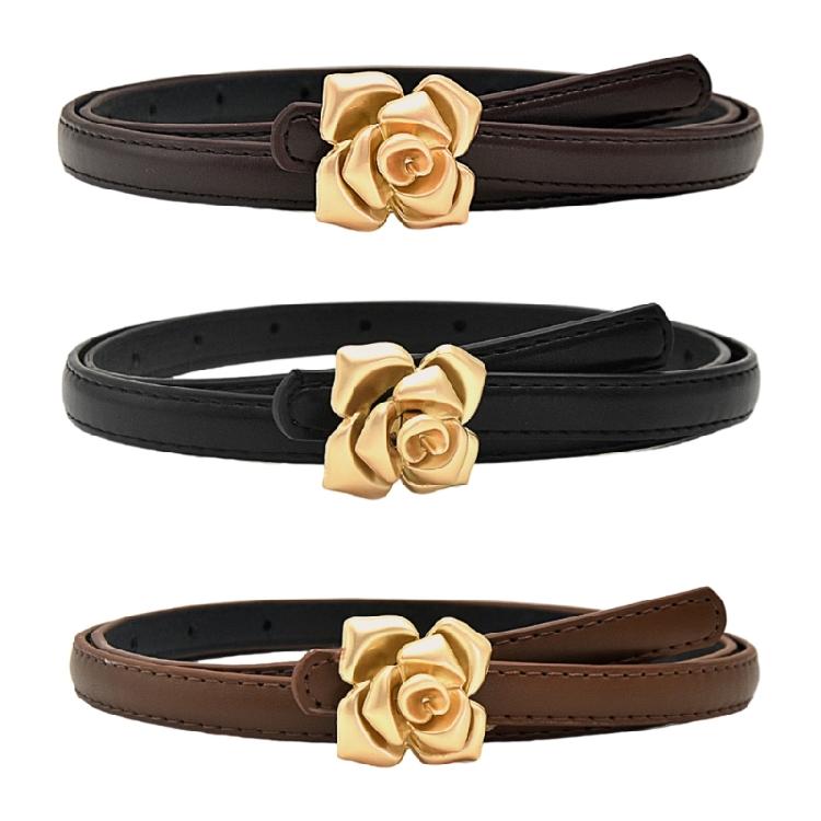 Women’s AdjustableLeather Belt With Rose Button Slender Design For Jeans And Pants