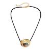 Modische Metall Oval Anhänger Halskette Damenmode Schlüsselbeinkette Schmuck Handgefertigt PU Lederkordel Halskette