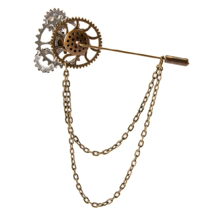 Steampunk Zahnrad Brosche Anstecknadel mit Metallkette Gothic Vintage Schmuck Abzeichen