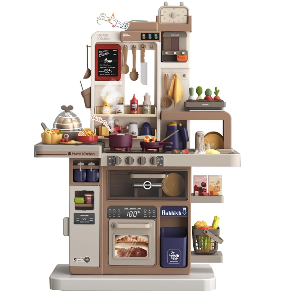 Button Moon 93cm Deluxe Kitchen Toy Set with Egg and Realistic Spray Trash Realistic Cooking Music Water and Indoor Pretend Kitchen Birthday Christmas